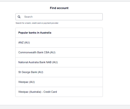 - Under ‘Connect your bank accounts’, select ‘Add an account’